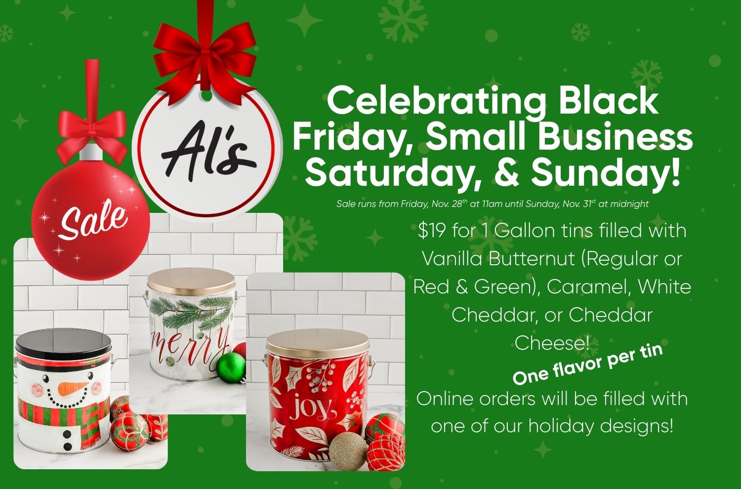 We have 2 physical locations here in Ohio and ship nationwide! Visit one of our stores to smell our delicious popcorn being popped in-house or schedule a tour with us for the full Al's Delicious Popcorn® experience.